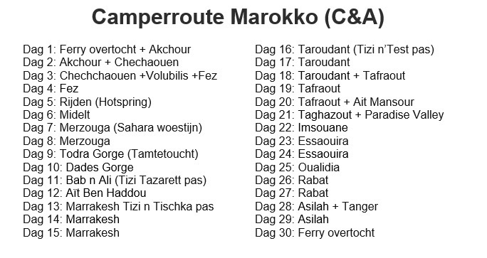 Dit stuk wordt nog verder uitgewerkt. We gaan niet, zoals in het 30 dagen voorbeeld stond, een tweede keer naar Marrakech.