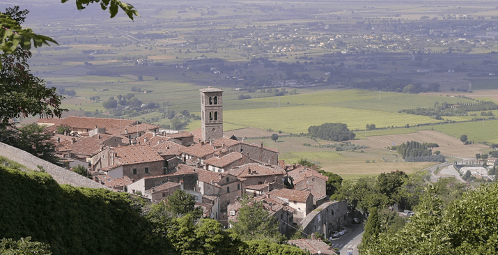 Van boven, vlakbij de kerk met klooster, naar beneden, de kerktoren is ongeveer zelfde niveau als Via Nazionale.