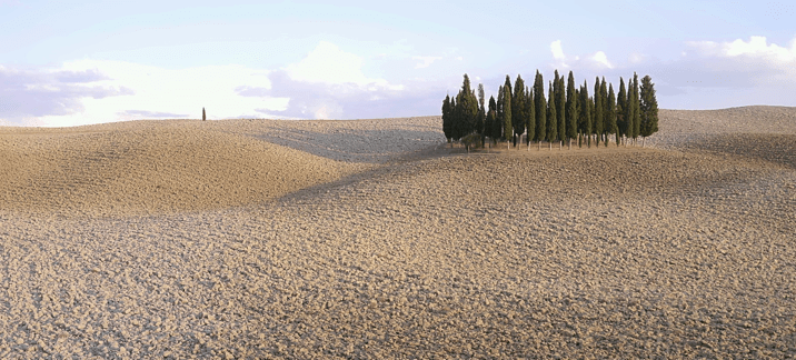 Daarna had ik een 2-tal locaties bij San Quirico d’Orcia in de buurt. De zon stond toen al vrij hoog, de achtergronden waren dampig, kortom, eerste les, zonsopkomst en zonsondergang zijn de betere tijden.