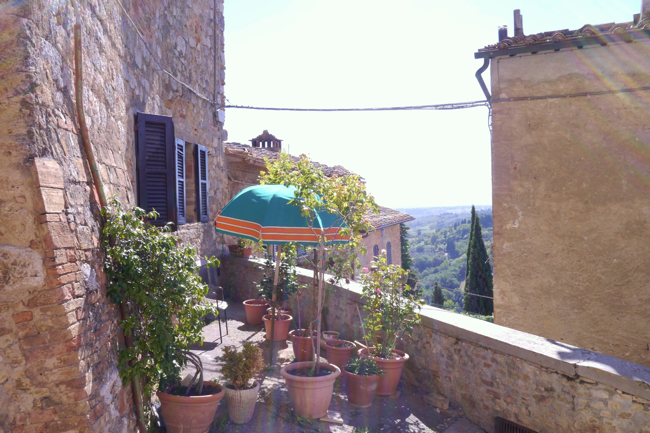 Zo’n balkon, in San Gimignano, gun je toch iedereen (vooral jezelf ;-))