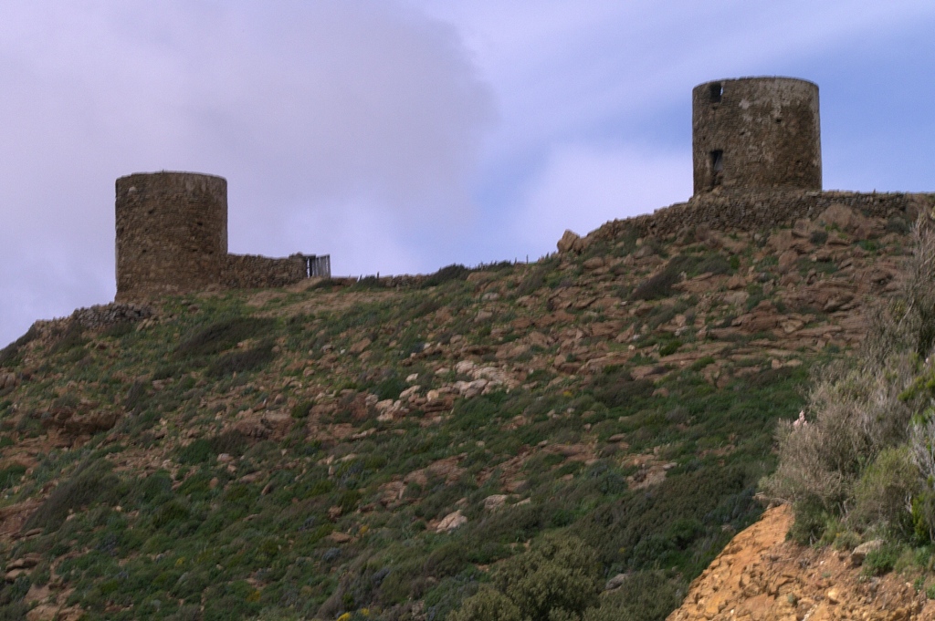 Op het eiland kom je ook heel veel z.g. Genuaanse torens tegen. In de tijd dat Genua in deze regio de baas was, hadden ze een heel waarschuwings systeem laten bouwen, honderden torens werden gebruikt om te waarschuwen voor mogelijk gevaar. Een soort vroege versie van de aEWacs, Early Warning systeem.