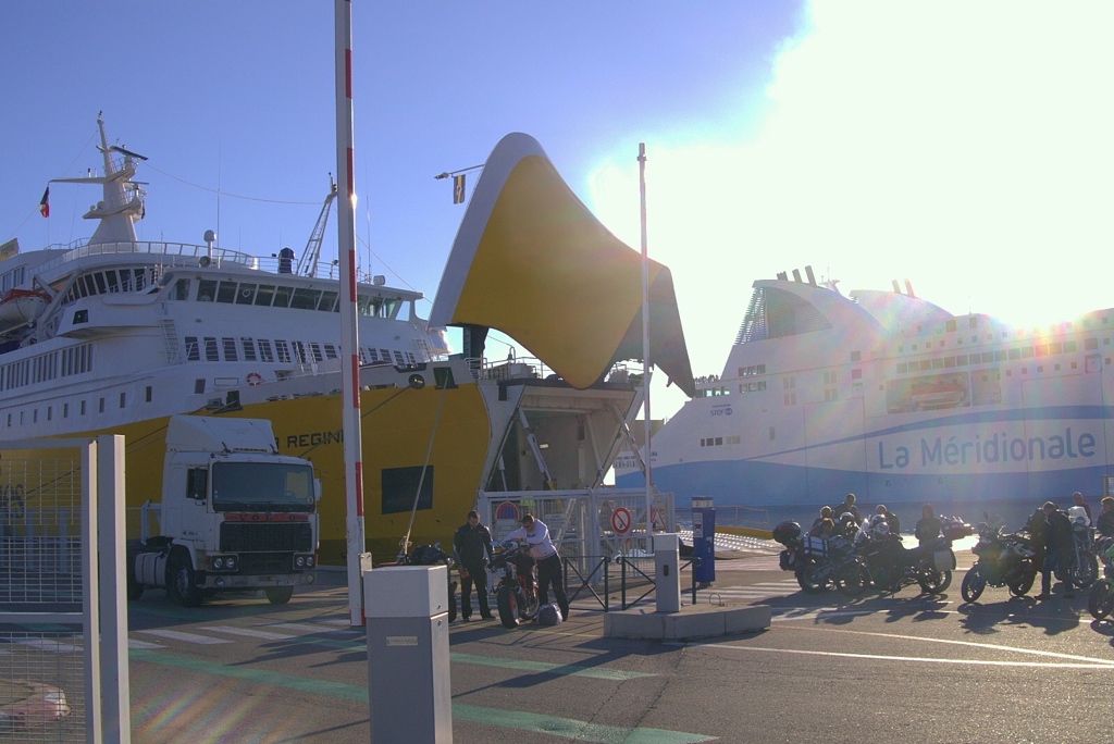 Na douchen, ontbijt, koffie en de laatste zaken opruimen vertrok ik kwart voor zeven van de camping. Iets na 7 uur was ik in de haven. Het was nog relatief rustig. Bij het nalezen van de ticket zag ik dat de boot bas om 8:30 vertrok en dus ook pas om 12:45 in Livorno zou aankomen. Tja, dan maar beter het ticket lezen. Bij het boeken waren beide tijden een half uur vroeger.
