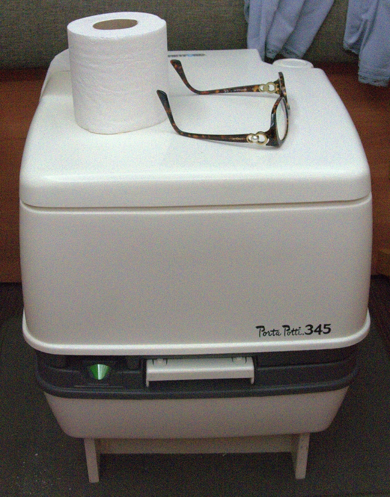 Afgelopen nacht hebben we ook al profijt gehad van het chemisch toilet. Vanochtend vond ik hem terug met bril, een leesbril wel te verstaan. Je maakt wat mee.