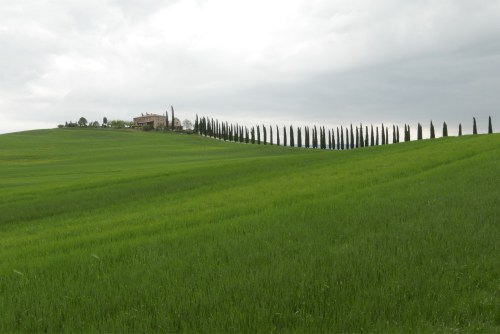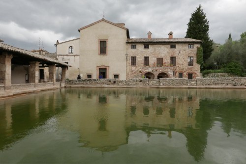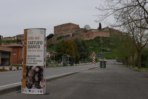 Na het ontbijt reed ik via de pinautomaat naar Monteriggione. Een kleine 10 km buiten Siena. Een fort/versterking van de tijden dat de grote steden nog regelmatig de degens met elkaar kruisden. Monteriggione was een soort alarmpost, vooruitgeschoven versterking. Niet echt een kasteel, meer een ommuurd dorpje. Veel is er nog van zichtbaar. Het meest in het oog opvallende is de bijna ronde omheining muur met de verschillende wachttorens.