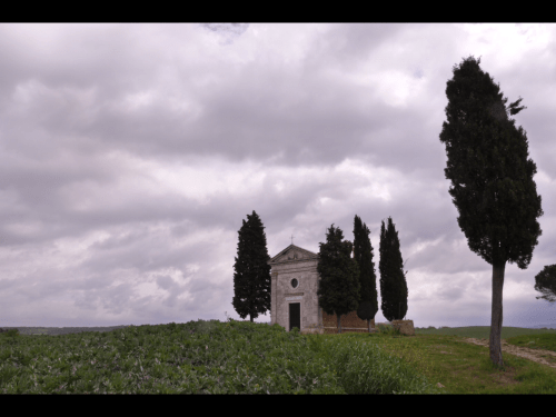 Bij toeval kwam ik er achter dat er een pelgrimspad door/langs Monteriggione loopt de z.g. Via Francigena. Deze loopt van Cantenburry in Engeland maar Rome. Een soort Pieterpad maar dan wat langer. Echte pelgrims kunnen dan ook onderdak krijgen bij de kerk. Voor gewone wandelaars zijn er routekaarten en georganiseerde reizen waarbij voor een deel van de route overnachtingen in B&B’s of hotels geregeld wordt inclusief de transfer van de bagage.