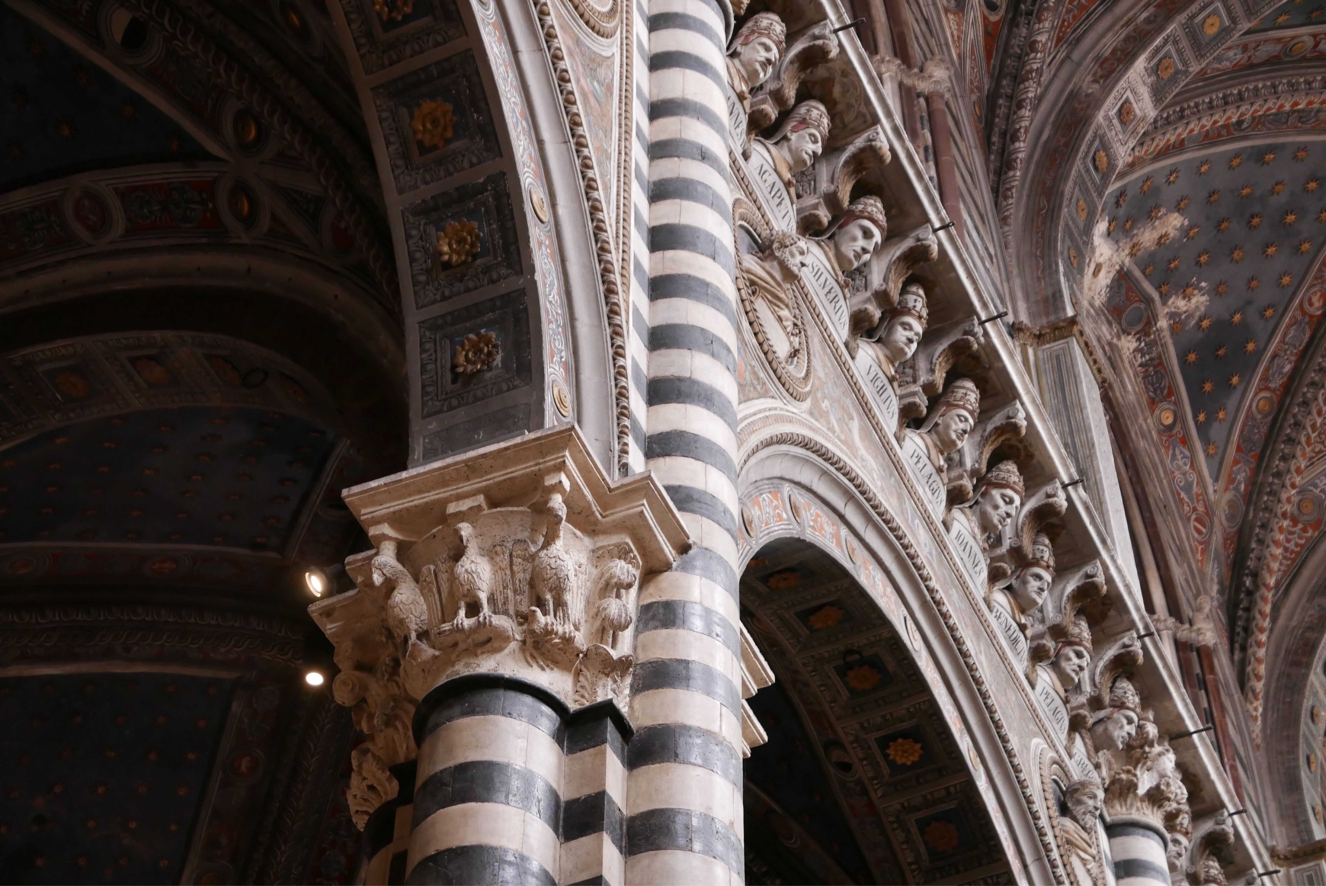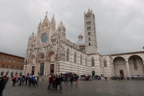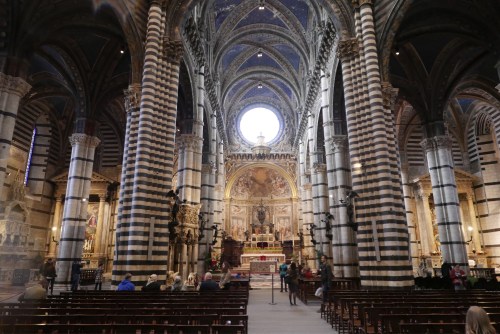 De Duomo van binnen. Niet zo groot als die van Florence, maar veel meer versieringen, mozaieken op de vloer etc.