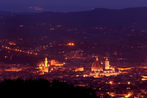 Na dat gedaan te hebben werd het langzaam tijd voor pasta Pici deel 2. Dat smaakte opnieuw uitstekend. Helaas was de wijn op, en de camping wijn, met kurk, en niet praktisch (rijdend bewaren) en me net iets te duur (hollander!). Meer dat houdt de avond ook weer helder. En met deze ietwat helderder avondlucht, maakte ik nog een aardige (vind ik tenminste) foto van Florence.