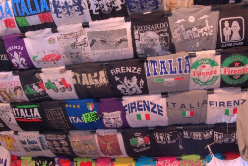 De vrijdagse weekmarkt, veel leren jassen, tassen, T-shirts, sjalen etc.