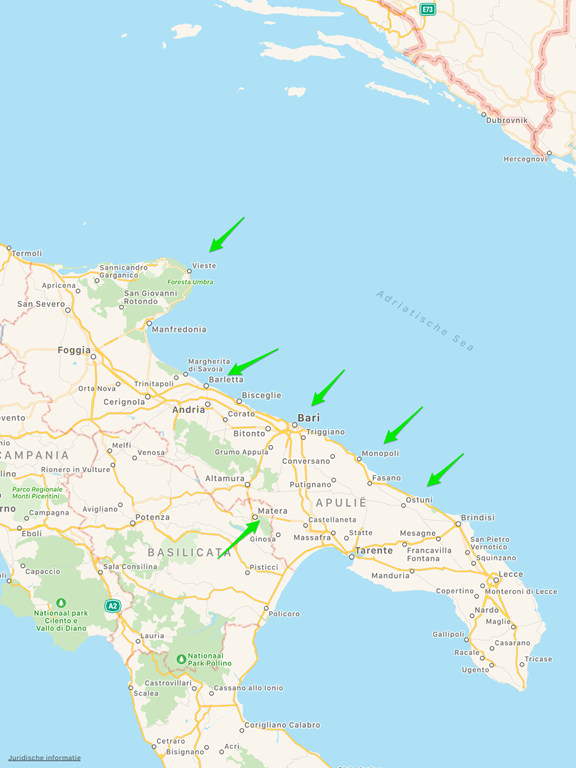 De reis gaat in 2 of 3 dagen. Eerst tot Milaan, dat is nog bekend terrein, en vandaar richting Bologna, Aansluitend langs de kust van de Adriatische zee naar beneden tot het ‘spoor’ van de laars. Daar gaan we in de buurt van Vieste staan. Later gaan we richting Bari, en alle mooie plaatsen daar in de buurt.