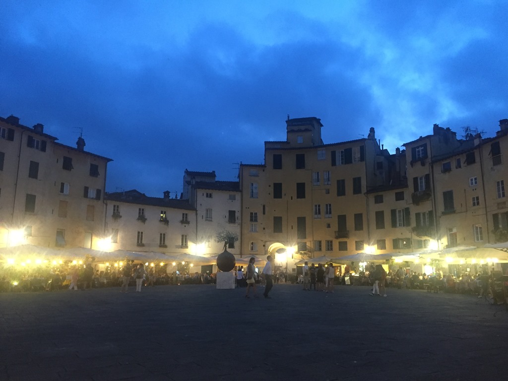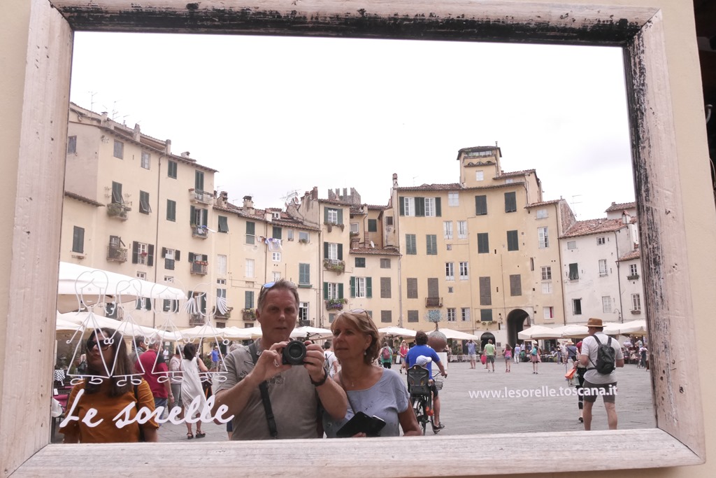 In totaal zagen we vandaag 5 bruiloften. Luxe auto’s, in de kerk, op het kerkplein, je struikelde er nog net niet over. Slenterend liepen we door Lucca richting één van de highlights, n.l. het amfitheater. Een ovaalvormig plein waar zich in de tijd van de romeinen een amfitheater bevond. Nu winkels, terrassen en gezelligheid.