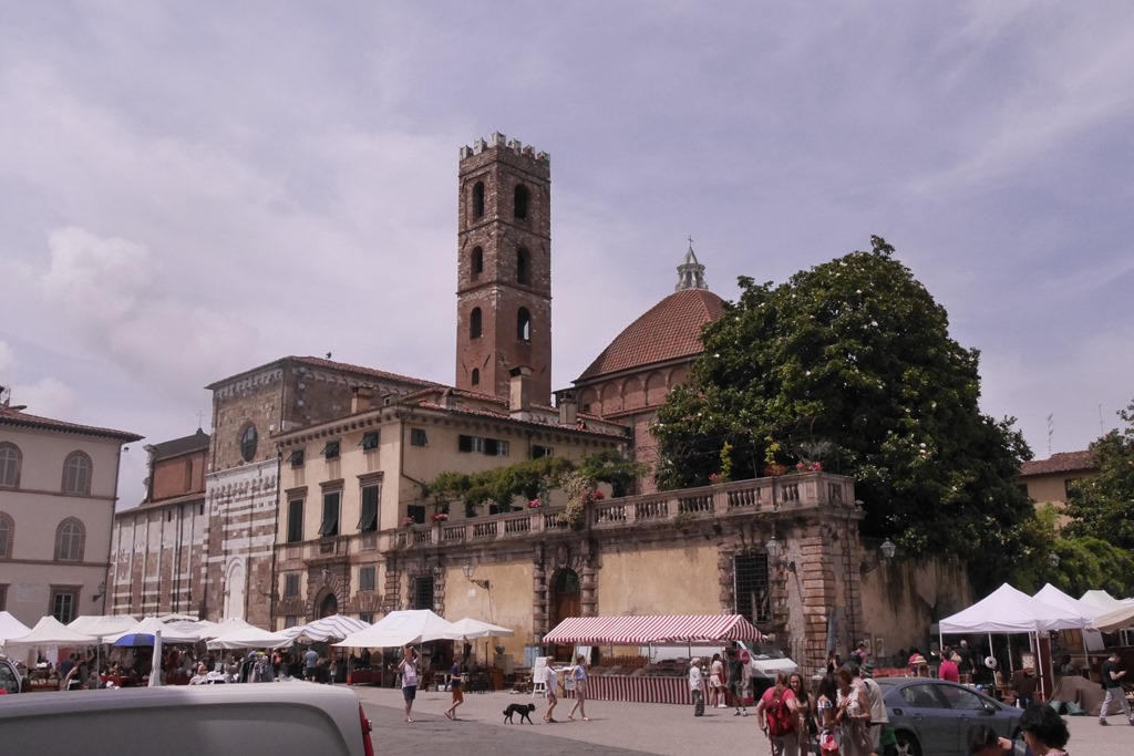 We houden het kaal hier, dus geen stoelen eruit. Eerst lunchen, daarna op de fiets Lucca in. C was hier nog niet geweest, en het beviel geloof ik wel. Lucca is een aparte toscaanse stad. Geen hoogteverschillen, een ronde stad met op de stadsmuren een wandel- en fietspad. Binnen de stadsmuren een gezellige oude stad, min of meer autovrij,.Veel oude gebouwen, kerken en leuke winkels.