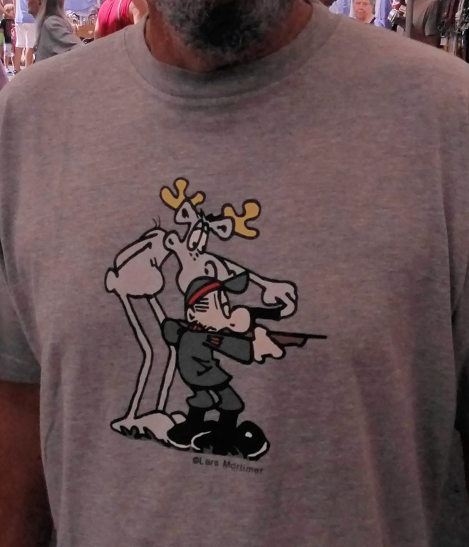 Soms zie je toch nog wat leuks op de markt, deze meneer had een heel aardig t-shirt.
