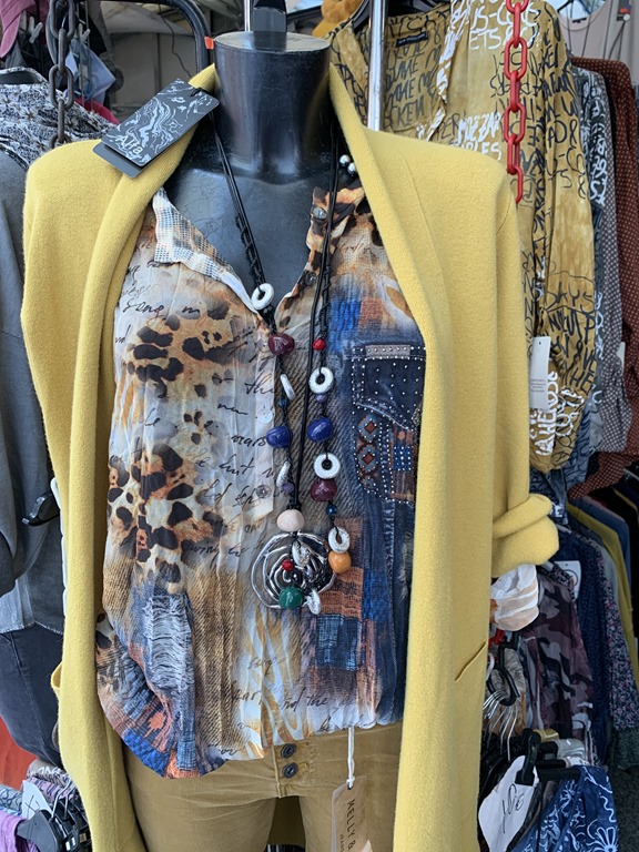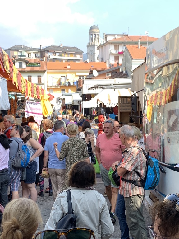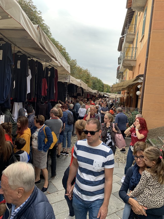 Het parkeerterrein achter het VVV stond vol mat kramen en verder de hele boulevard. Zelfde mix als gister in Verbania, en we zagen ook veel ‘bekende’ gezichten, die we gister ook al bij de kramen zagen. Maar dat mocht de pret zeker niet drukken, des te meer tijd nu om nog eens goed rond te neuzen, en te treuzelen Knipogende emoticon