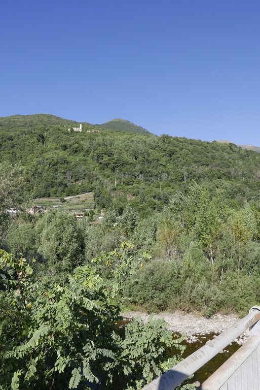 Nadat we ontbeten hebben zijn we nog even bezig over wordt het de auto of de fiets. Locarno is 17 km ver, dus best wel te doen, met de auto of de fiets. Het wordt de fiets. Het ziet er wel al wat ongezellig bewolkt uit, maar iets na half 10 stappen we op de fiets; Nog voor de grens met Zwitserland moeten we even wachten. Een bus en een vrachtwagen kunnen elkaar niet passeren. Het duurt even voor de vachtwagen het oplost door wat achteruit te rijden.