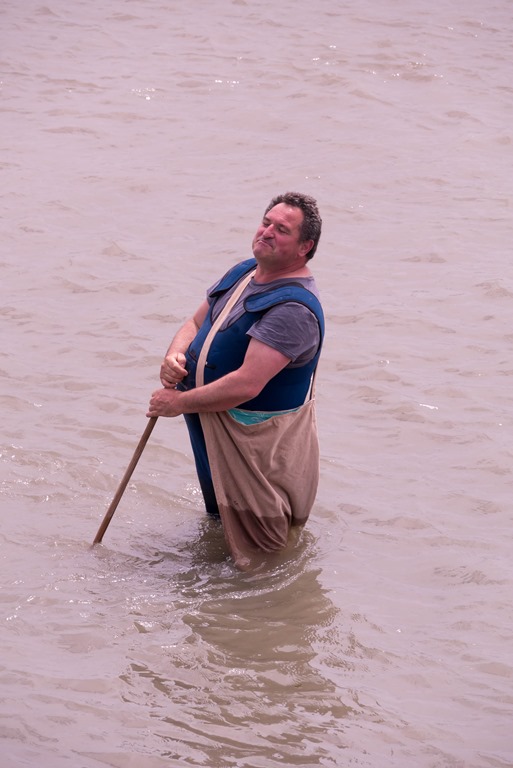 Op de terugweg, volgens de app van Noirmoutier was het afgaand tij, nog 50 minuten tot eb, zagen we een 3-tal mensen op/in het kanaal van de zee naar de stad lopen. Met prikkers probeerden ze, waarschijnlijk, te vissen. We hebben het ruim een half uur bekeken, maar meer dan soms wat rommel, of een klein krabbetje, werd er niet gevangen. Maar de lol bleef er nog wel in.