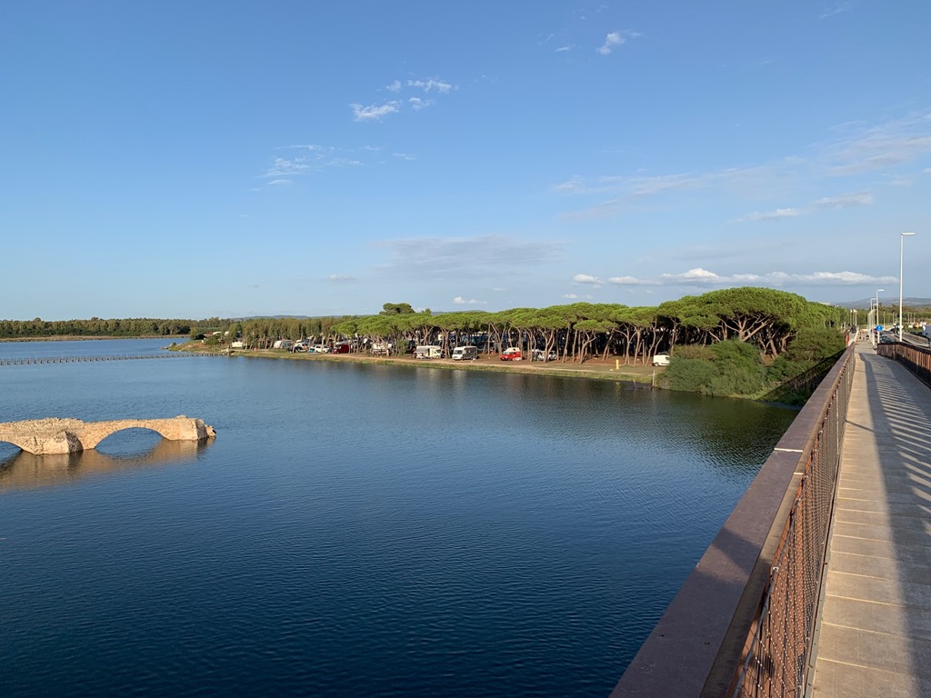 Kwart over 2 kwamen we aan bij Camping Laguna Blu, onderdeel van een groep (Baia Holidays) van een aantal grote campings hier op Sardinië. Grote camping, zowel huisjes als campingplaatsen, Een flink (3) zwembad, en nog open ook. Direct aan zee, wel een weg er tussen, en aan de andere kant een lagune (zie foto).