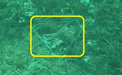 En inderdaad, een overvloed van vissen van heel klein tot sommige 30 cm lang. Groepjes, veel, en individuele vissen. Bij de tweede en derde keer zwemmen, later, nam ik de onderwatercamera mee, en legde een aantal vissen ook op video vast. Bij de laatste keer was wel apart, helaas was C er niet bij, bij een wat dieper deel zag ik onder een school vissen iets bewegen, dacht eerst een plastic zak die mee ging op de deining van de zee, maar nope, het was een octopus, pootjes, 30 cm, romp 20-25, van boven af was die nogal gecamoufleerd, en hij/zij viel dan ook weg tussen de bodem en de rotsen, maar de onderkant van z’n poten, en zijkant, denk ik, was wit/blauw/lila, en daardoor zag ik hem/haar uiteindelijk.