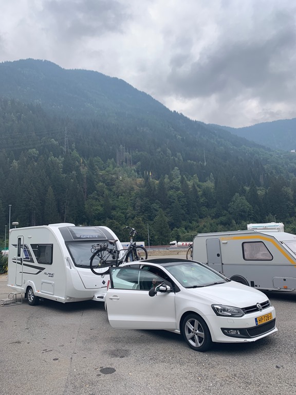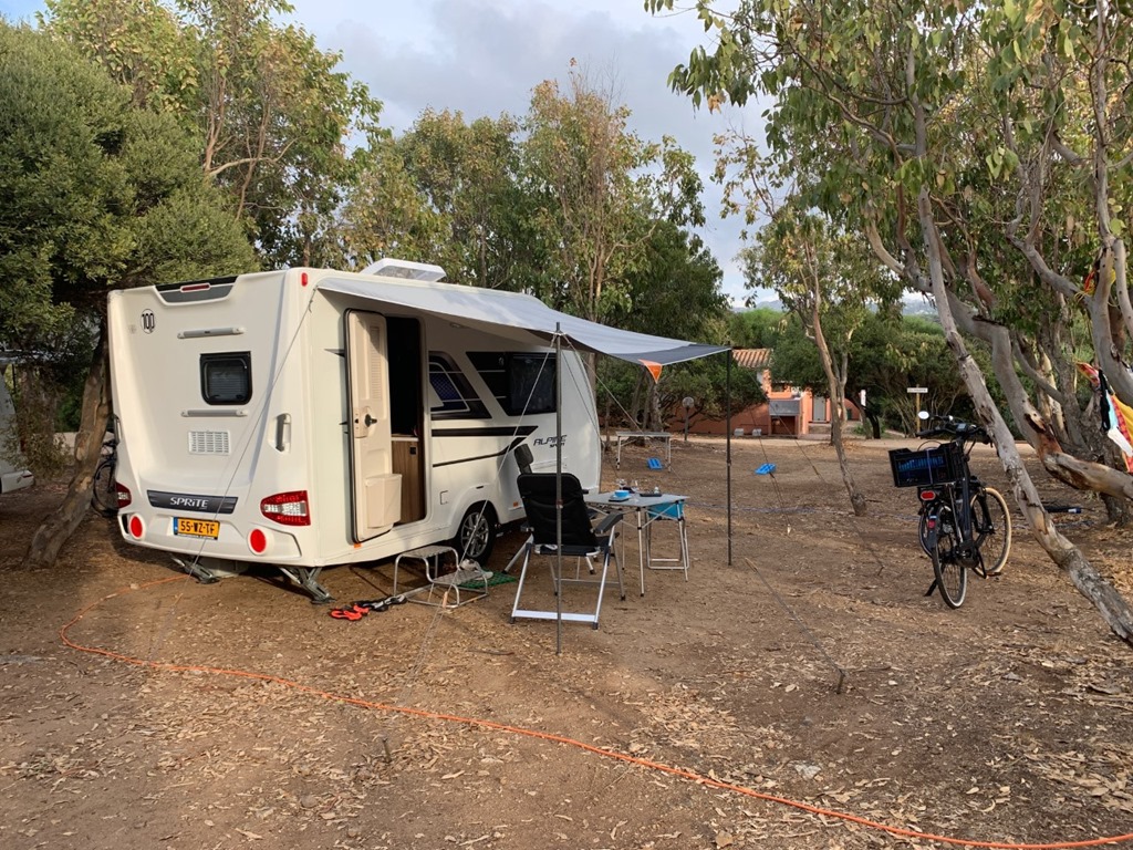 Bij de camping hangen we e.e.a. uit om te drogen, dat maar niet echt wil lukken. Ging C douchen, namen we ons dagelijkse drankje, ruimden we het schaduw doek en de ‘vloerbedekking’ alvast op. Keken we bij het restaurant wat er op het menu staat. Keken we alvast naar de camping van morgen, die niet 200 km, maar 285 km rijden is. Ruimen we straks de tafel/stoelen en luifel vast op. Ga ik ook zo douchen en gaan we straks hier in het restaurant eten.