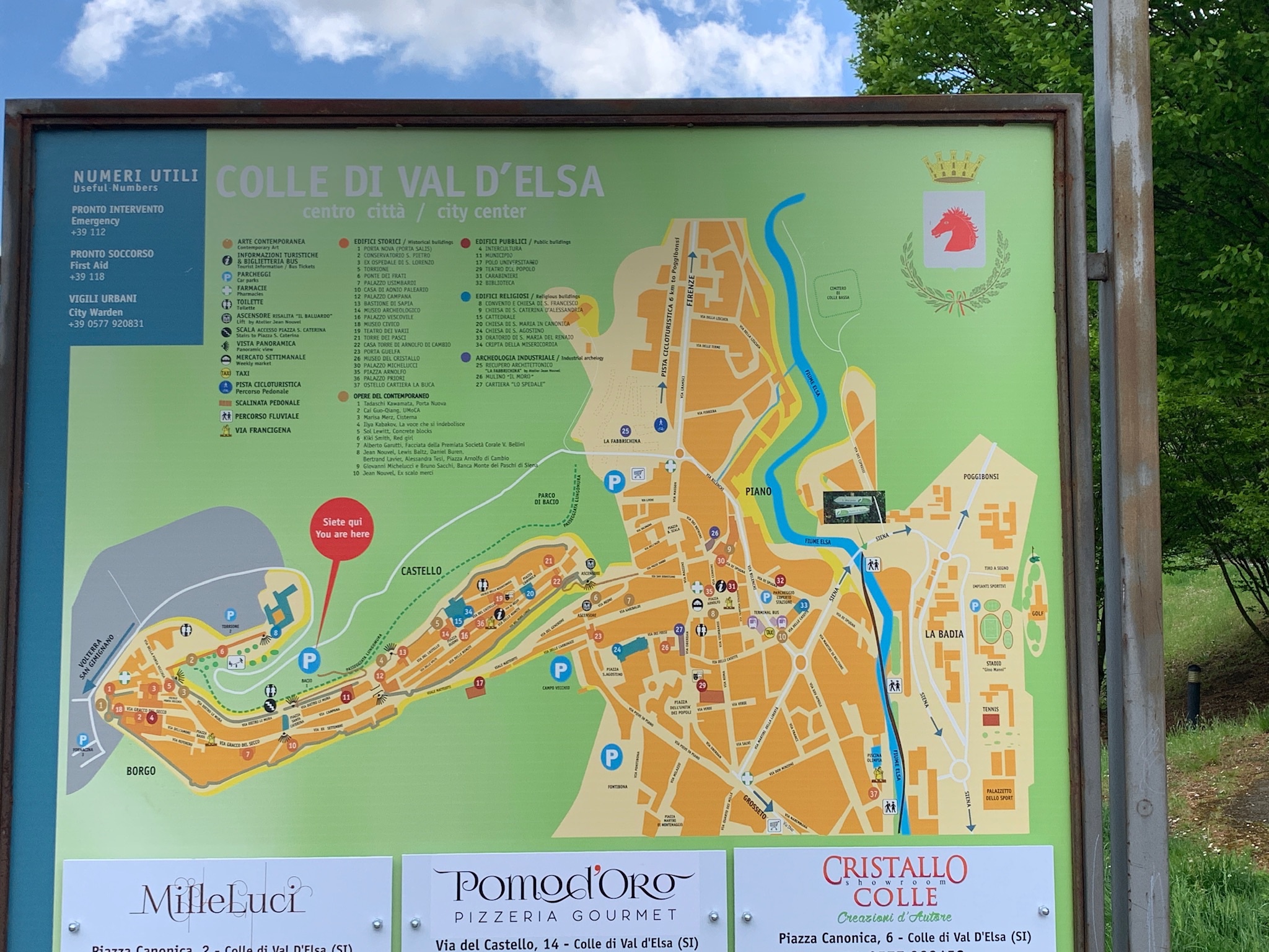 Bij Cecina verliet ik de snelweg om over de SS68 richting Volterra, San Gimignano naar de weg naar Siena te rijden. Volterra en verder was cool, veel haarspeldbochten, opnieuw mooie uitzichten, soms slome auto’s voor je, waardoor je in z’n één de haarspeld in moest, en bijna stil staat. Wat niet altijd werkt, afhankelijk van welke kant je met de motor op hangt. Maar ook dat heb ik gered. Volterra kon ik aanraken, San Gimignano was in een flits links in de verte te zien.