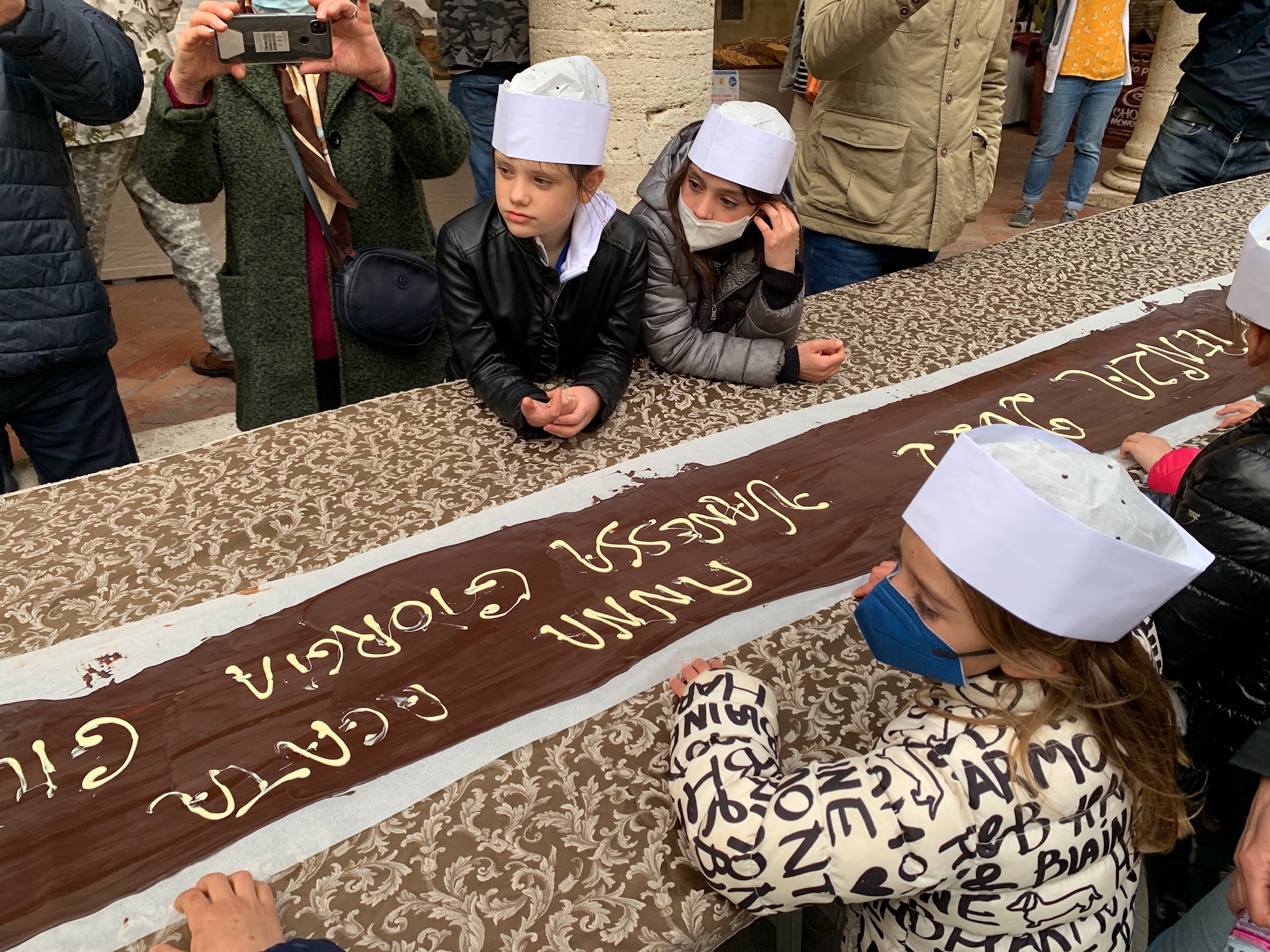 In Pienza is een chocoladefeest (4 dagen) aan de gang met o.a. een markt met allerlei chocolade goed. En vanavond voor de kinderen je naam op chocolade en lekker mee naar huis nemen.