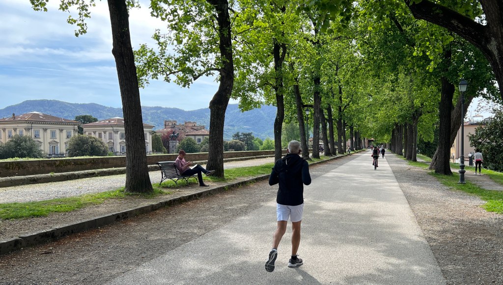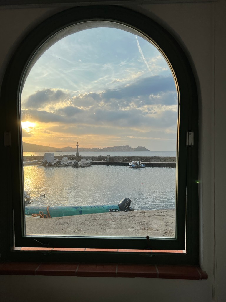 Effe korte break op een bankje. Over de zee kan ik de vaste wal van Italië goed zien.