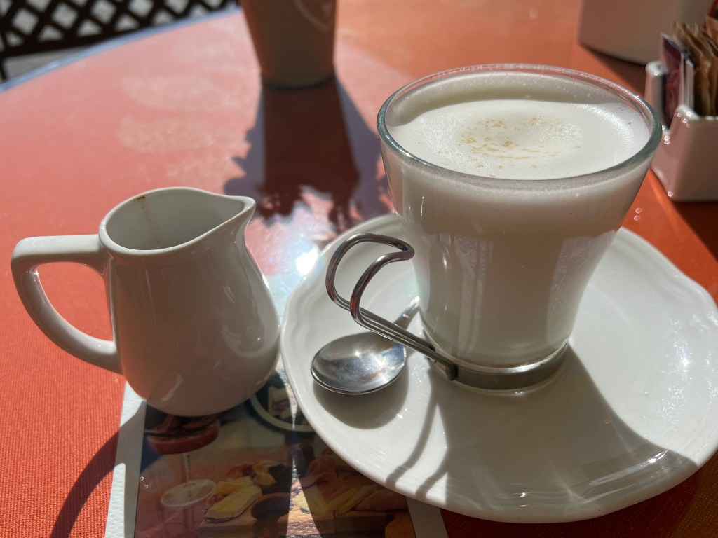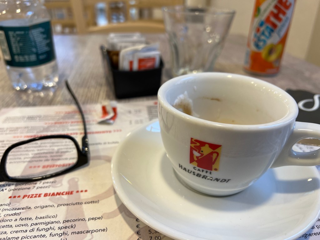 Maar de dag begint niet slecht. Dus eerst maar ontbijten. Uitgebreid buffet in het restaurant naast het hotel. Ober met stijf gesteven witte jas, chique. Eindelijk ook Europees ontbijt, niet alleen zoete broodjes. Met bruin brood, beleg, plak koek (beetje dolce mag wel). Yoghurt, vruchtensap en een cappuccino begint de dag (goed).