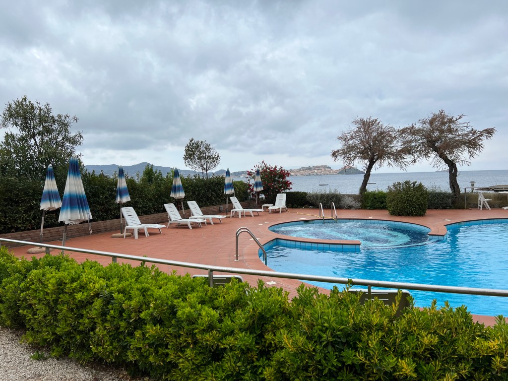 Bij Capoliveri had ik een probleempje. Kon niet echt een geschikt parkeerplekje voor de motor vinden. Wel parkeerplaatsen, tegen betaling. Maar waar laat je je parkeerkaartje? Dus na een kwartiertje zoeken toch maar doorgereden naar de BnB. In de middag gaat het regenen. Dat wilde ik voor zijn. Bij de Conad, net voor de camping, lunch gehaald.