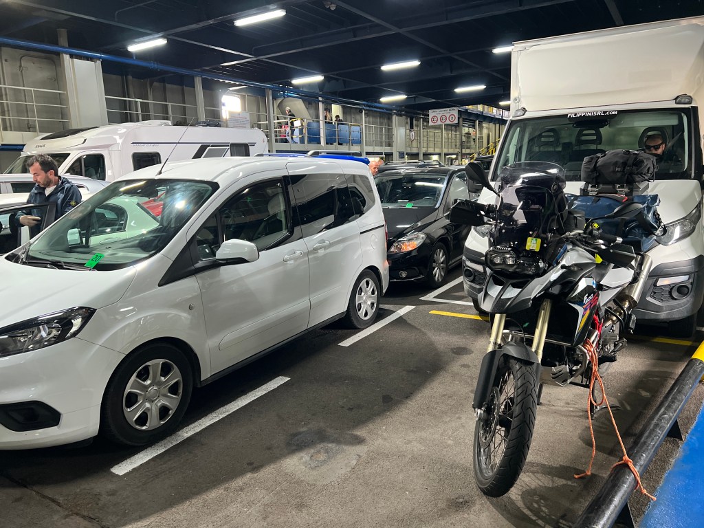 Daarna omkleden voor een motorritje. Zo kwart over negen lukt het me het hek te openen, er doorheen te rijden net voor die weer vanzelf dichtgaat. Lijkt makkelijk, maar voor het hek ligt een best steile helling.