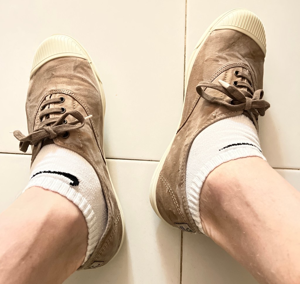 Ik had al eerder wat Eco schoenen gezien. Zag ze hier ook weer. Van oude materialen hergebruikt. Wel lekker, extra voor op vakanties. Moest wel een pas-sok (nylon) aan want mijn sokken waren doorweekt. Prijs was nog eens een tientje minder dan aangegeven. Maar daar zeur ik dan maar niet over 😉