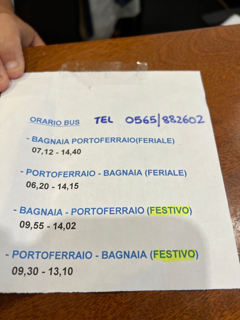 Bij de receptie kreeg ik dit busschema. De onderste 2, festivo, gelden vandaag. 2 bussen op de gehele dag…