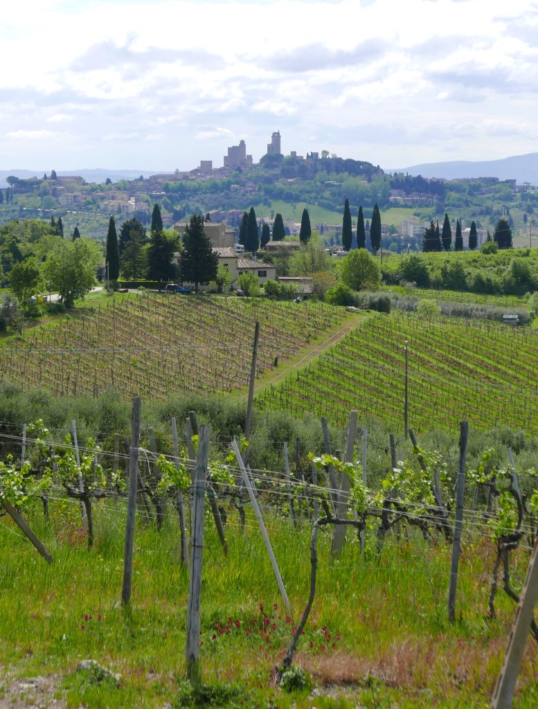 Dus op de motor, Cecina uit komen. TomTom wilde me van de verkeerde kant, een éénrichtings zandweg laten nemen. Na de snelweg (onderdoor) begint de weg al aardig bochtig te worden. Stuk heb ik vorig jaar, op dag 2, ook deels gereden. Tegen Volterra worden het de ene naar de andere S-bocht, omhoog. Bij Volterra, om de groene (gele) (om)weg naar San Gimignano te nemen, rijd ik linksom. Kom nog langs de camping waar ik enkele keren gestaan heb met de camper en caravan (Balze). Via een mooie, maar intensief te rijden weg, rijd ik richting SG.