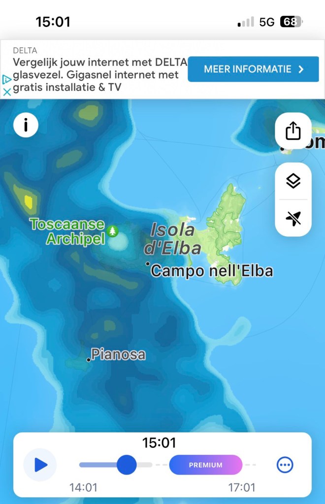 Nog even aangekeken of ik nog naar de andere kant van het eiland kon. Was hier even droog. Maar RainViewer, Europese buienradar, gaf geen hoop.