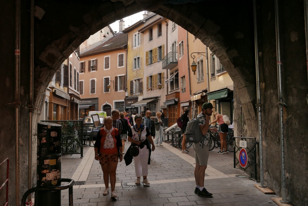 Na een tijdje lopen en snuffelen was het tijd voor iets te snacken. Noten chocolade koeken, ondertussen waren we bij één van de highlights van Annecy. De Pont des Amours. Watertje met mooie bomen en de ‘Pont’ (brug). Daar rij je dan 800 Km voor😉