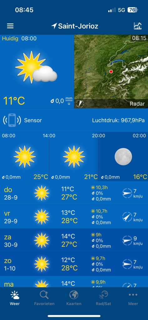 Mooie piek temperaturen, maar ‘s-nachts fris.