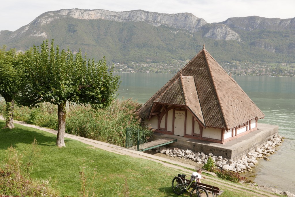 Iets na 10en vertrokken we op de fiets. Er is een afgescheiden fietspad naar Annecy, ideaal.