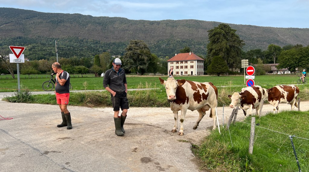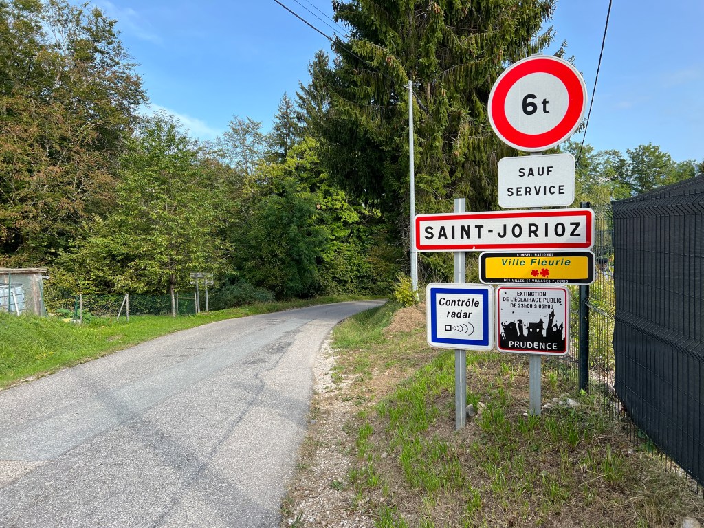 Boven liepen we op enigszins gelijke hoogte, langs de bosrand, terug naar Saint Jorioz. De plaats van de camping. Zowel fietsers als motorrijders hadden ‘onze’ weg ook gevonden.