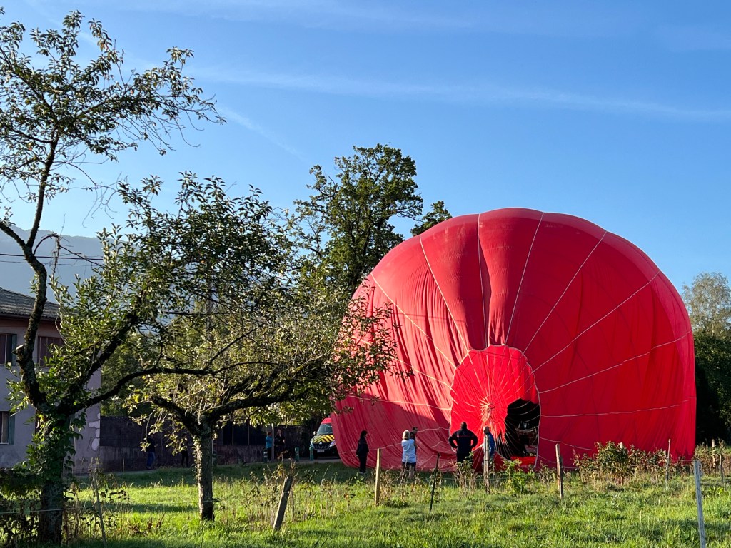 Ik had, zo vroeg al een ballon gezien, maar vlak voor de camping waren ze bezig deze rode “op te blazen”.