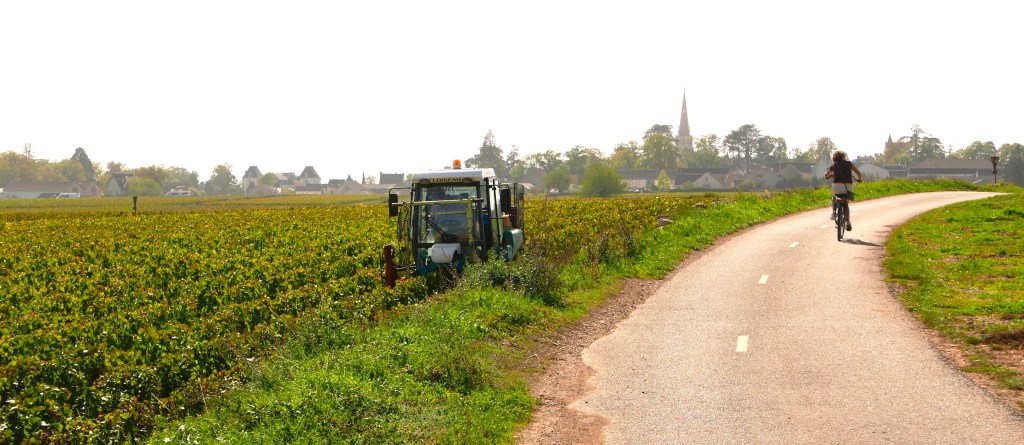 We zochten de fietsen weer op en met een enigszins tegenwerkende fiets van C (kregen de electrische versnellingen niet van stand 1 af) reden we terug naar Meursault.