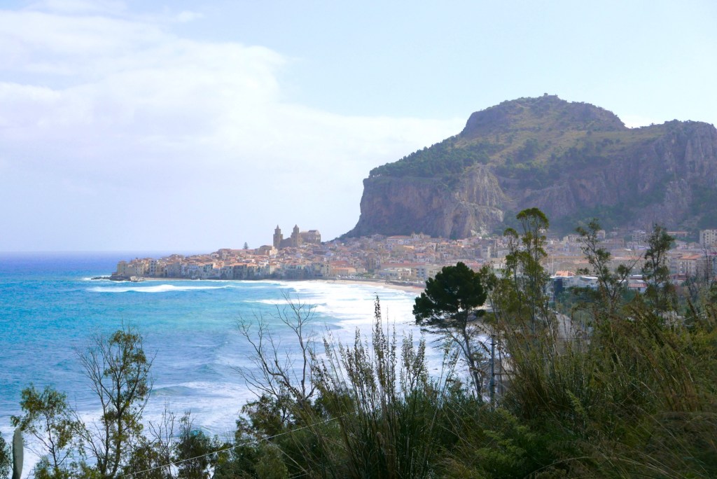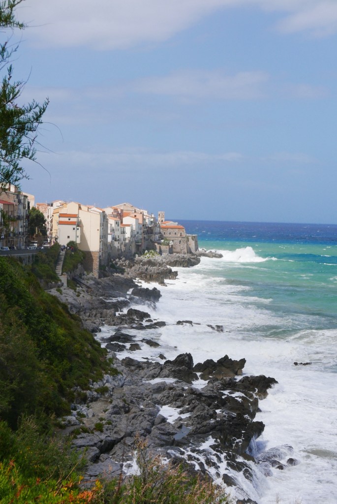 Vandaag dus op de fiets naar Cefalù, met fietshelm op. Is toch een drukke weg, alhoewel de auto’s flink de ruimte nemen om je te ontzien, of gewoon achter je blijven. Heuvel op, heuvel af, handen aan de remmen. En toen het uitzicht.