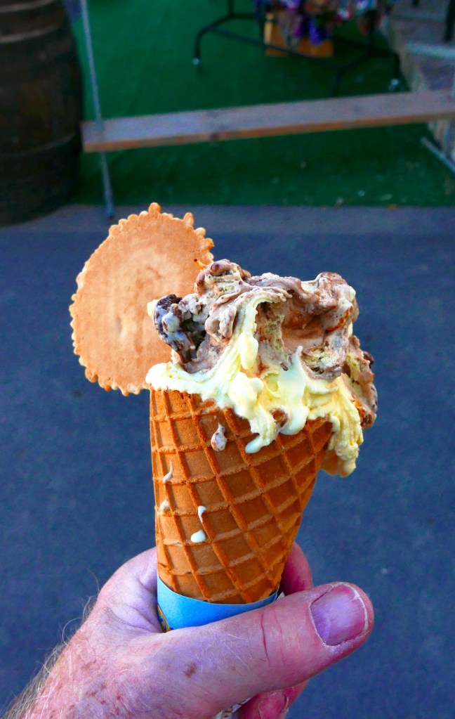 Op de camping komt ‘s-ochtends een bakker, behalve op zondag. Tja, dat word restjes pizza als ontbijt. Avondeten werd een andere pasta met de tweede portie saus van eergisteren.