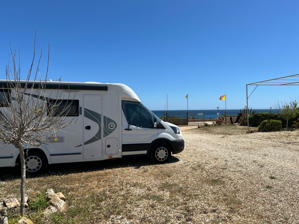 De plek leek ideaal, maar ze hebben maar een 2 Ampere stroomaansluiting. Omdat mijn koelkast niet werkt op de gasaansluiting (garantie), ging dat niet werken. Zelfs met de koelkast uit sloeg de ‘stop’ steeds door