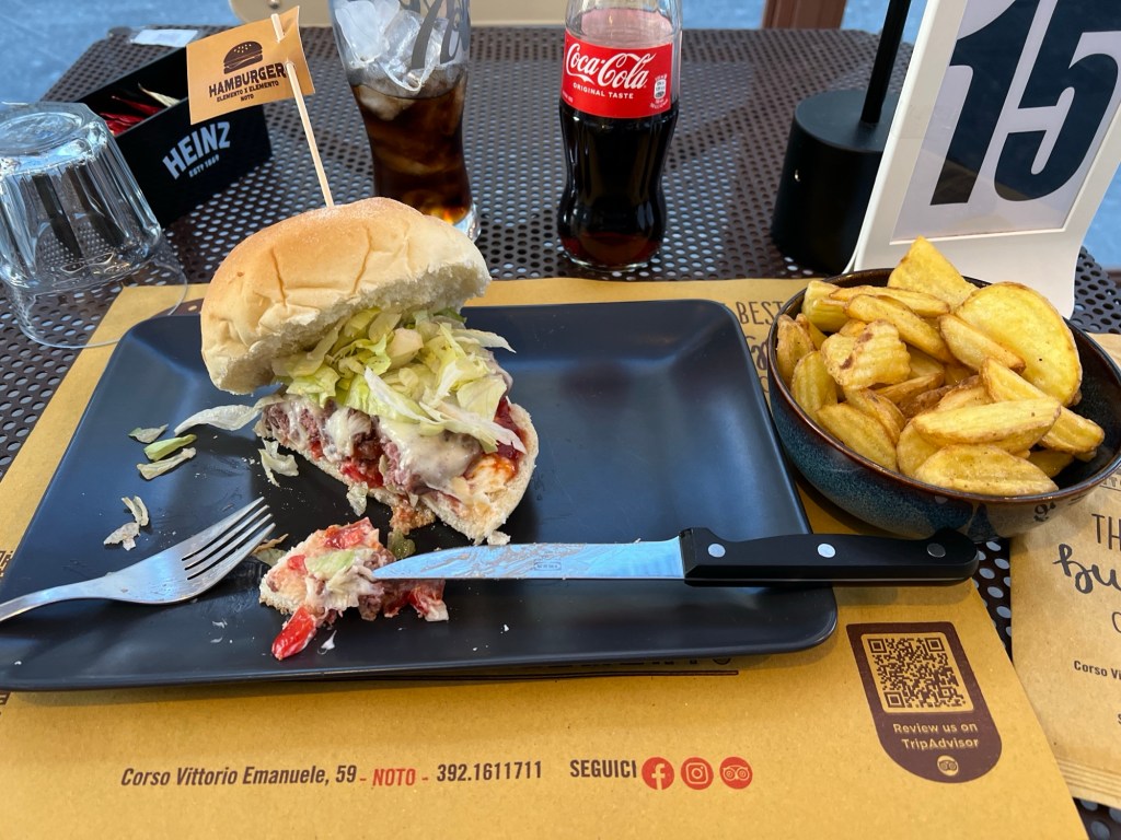 Op de camping wat kouds gedronken. Het was behoorlijk warm geworden. Serie op Prime afgekeken en bookreader gelezen. Zo tegen half 7 besloot ik lopend weer naar het stadje te gaan voor avondeten. Even geen pizza of pasta, hamburger met frieten.