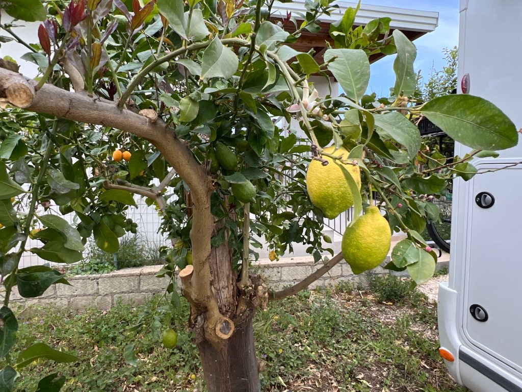 In San Lorenzo reed ik na douchen, pizza ontbijt en verder reisklaar maken net voor half 11 weg. Klein half uurtje later stond ik alweer op de camperplaats bij Noto, tussen de citroenen.