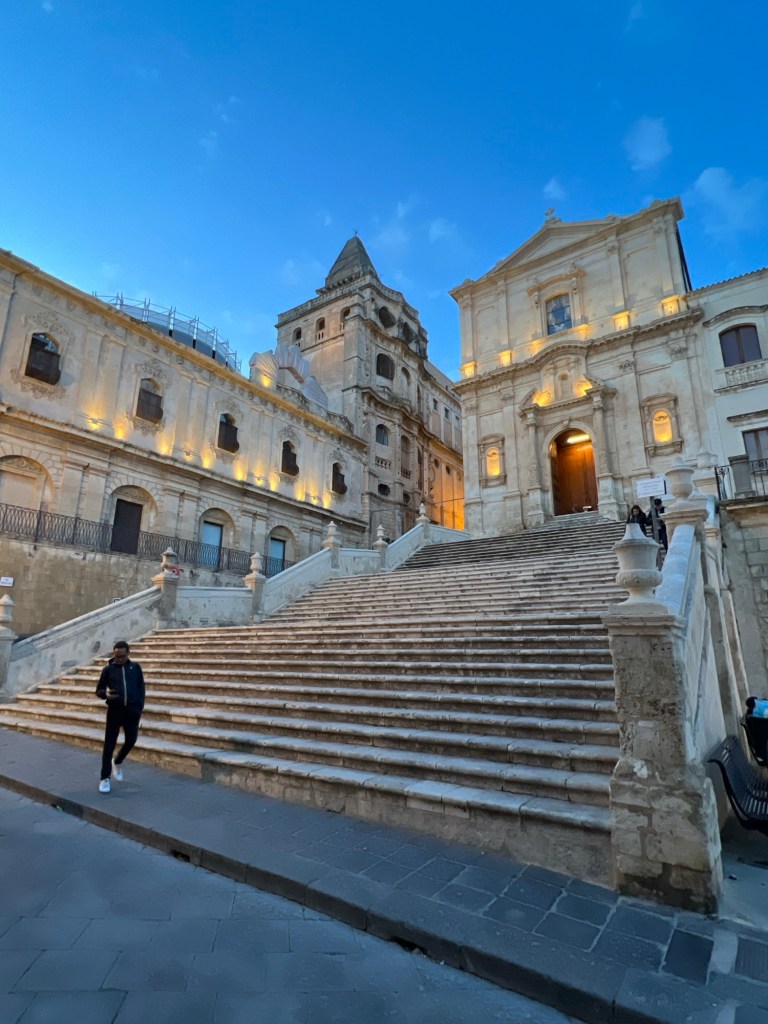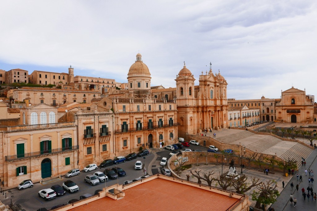 Om half 12 vertrok er een gratis bus naar Noto zelf. En aangezien dat hoger ligt dan de Camperplaats, was dat wel welkom. Vanaf de afzetplaats was het nog een 10 minuten lopen naar het stadscentrum.