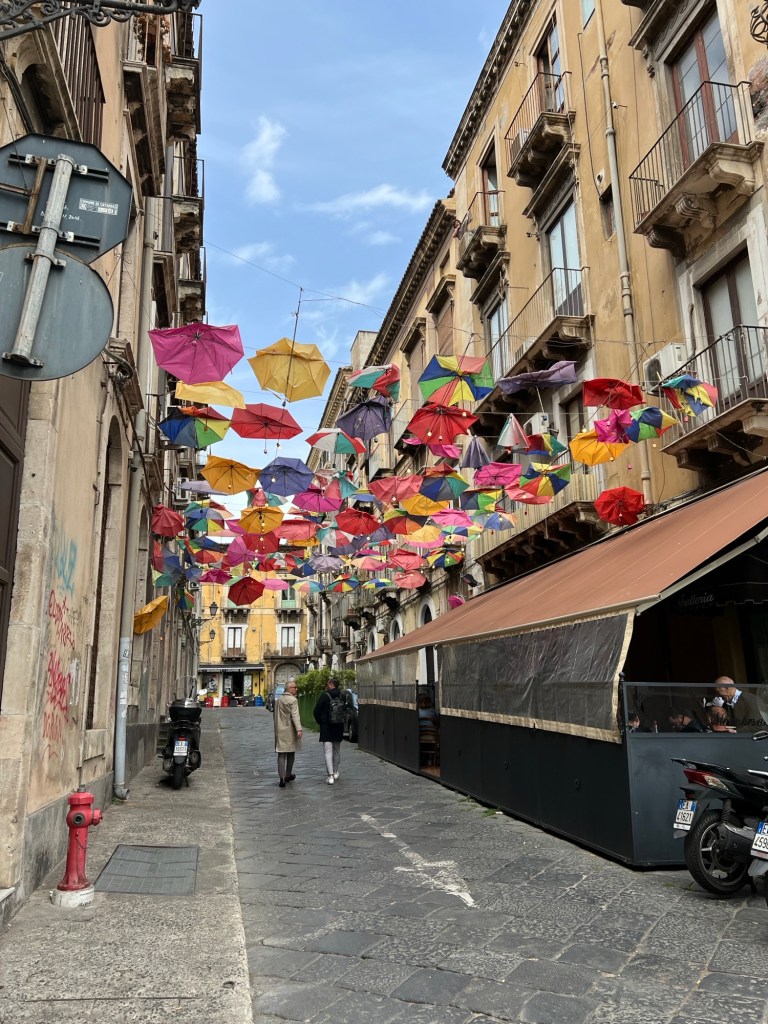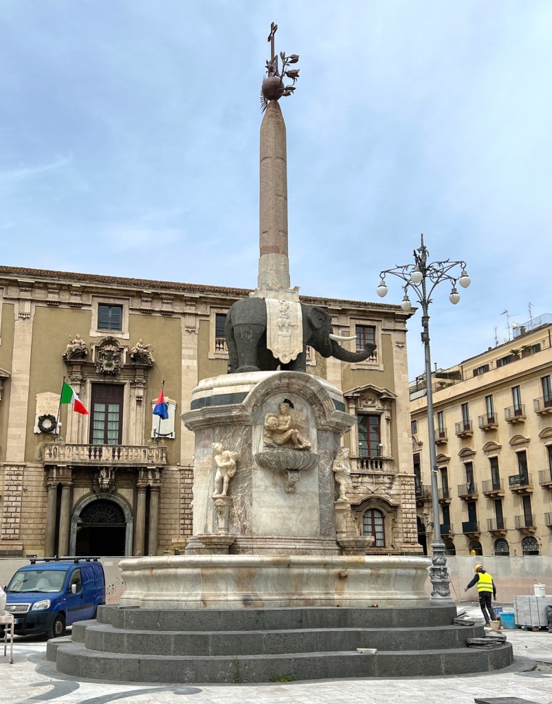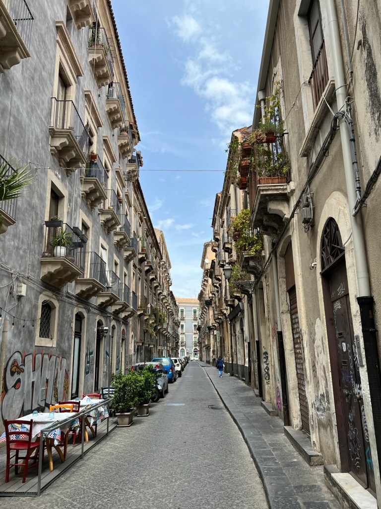 Omdat ik er toch was, en tijd genoeg had, liep ik alvast een klein rondje door het oude centrum van Catania. 2 lange straten, met uiteraard de nodige zijstraten. Ik begon met de Via Etna, daar kon je inderdaad aan het einde van de straat de Etna zien, maar die lag vandaag deels in de wolken. Er waren genoeg andere ‘trekpleisters’.