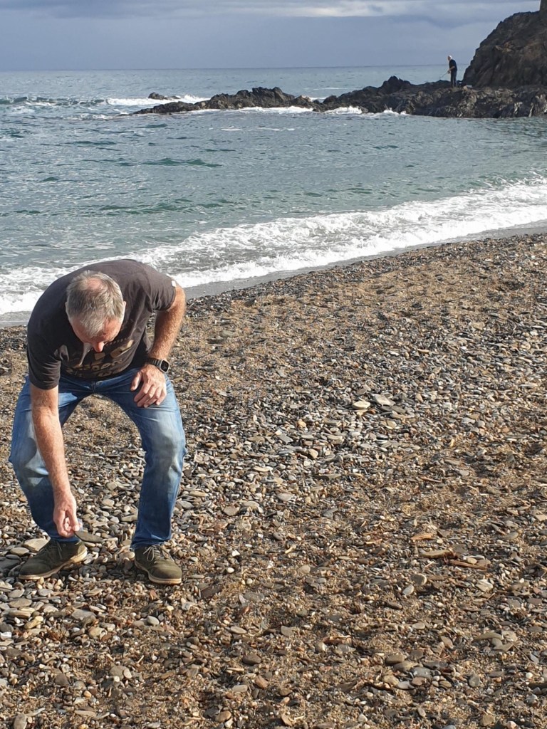 Vrij strandje naast de camping. Zocht nog een aardige steen.