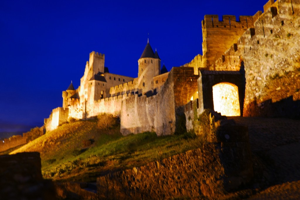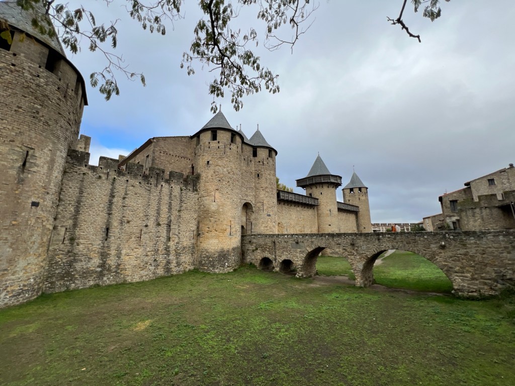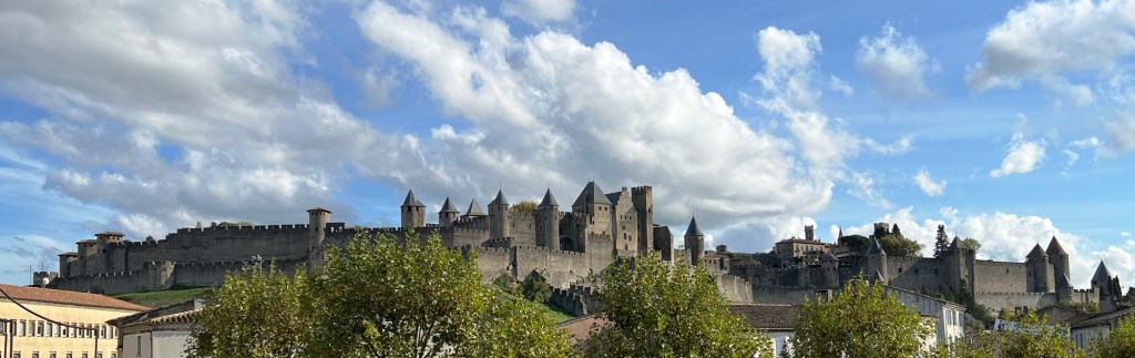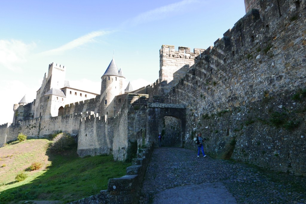 Douchen, ontbijten en rond half 9 zaten we op de weg naar Carcassonne. De plaatsen bij de wijnboer, tegen de muren van Carcassonne, waren al vergeven, dus we reden naar de camperplek(ken) naast de gesloten camping. We hadden plaats, en betaalden voor 24 uur aanwezigheid. Na een koffie vertrokken we naar de Cité, de oude burchtstad.