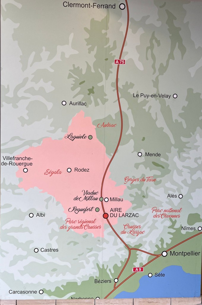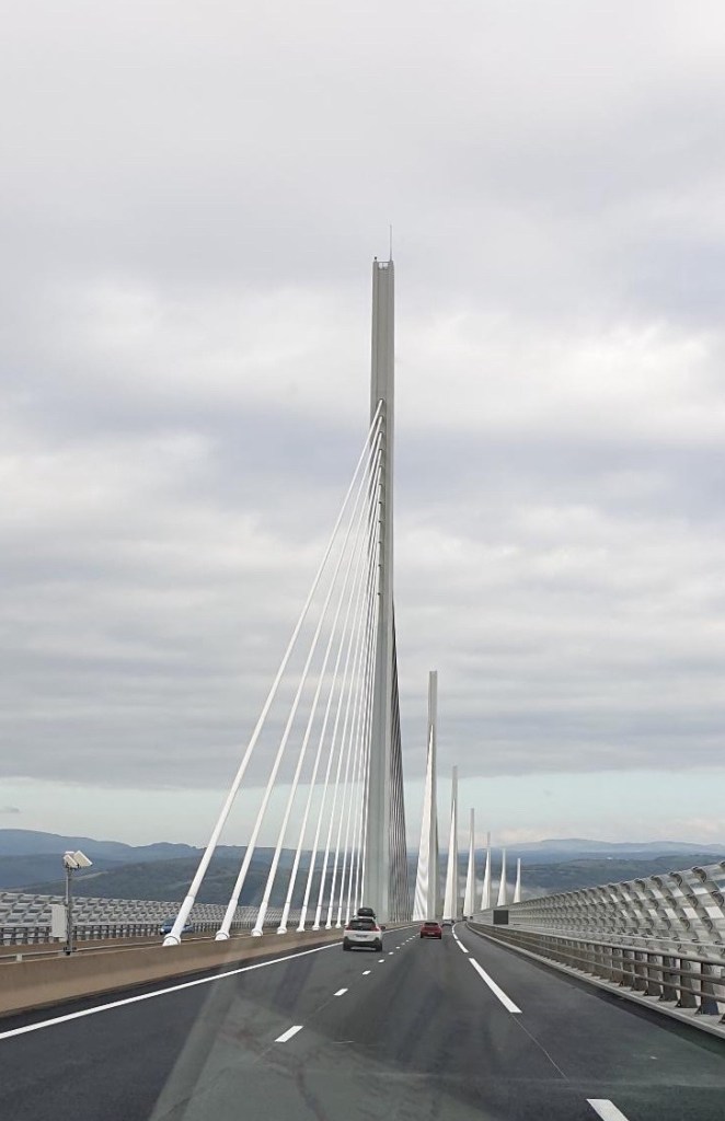 Het is, voor mij, raar een route te rijden die ik niet enigszins ken. Vertrouwen op TomTom, die ons eerst enigszins richting Narbonne leid, dan opeens allerlei smalle D wegen waar ik Beziers soms zie staan. Dan opeens Clermont-Ferrand (ook Millau) op borden en dus voornamelijk D wegen. Dan opeens de A75, die gratis is behalve de brug bij Millau zelf. TomTom ingesteld op geen tolweg, wilde dus door Millau zelf.