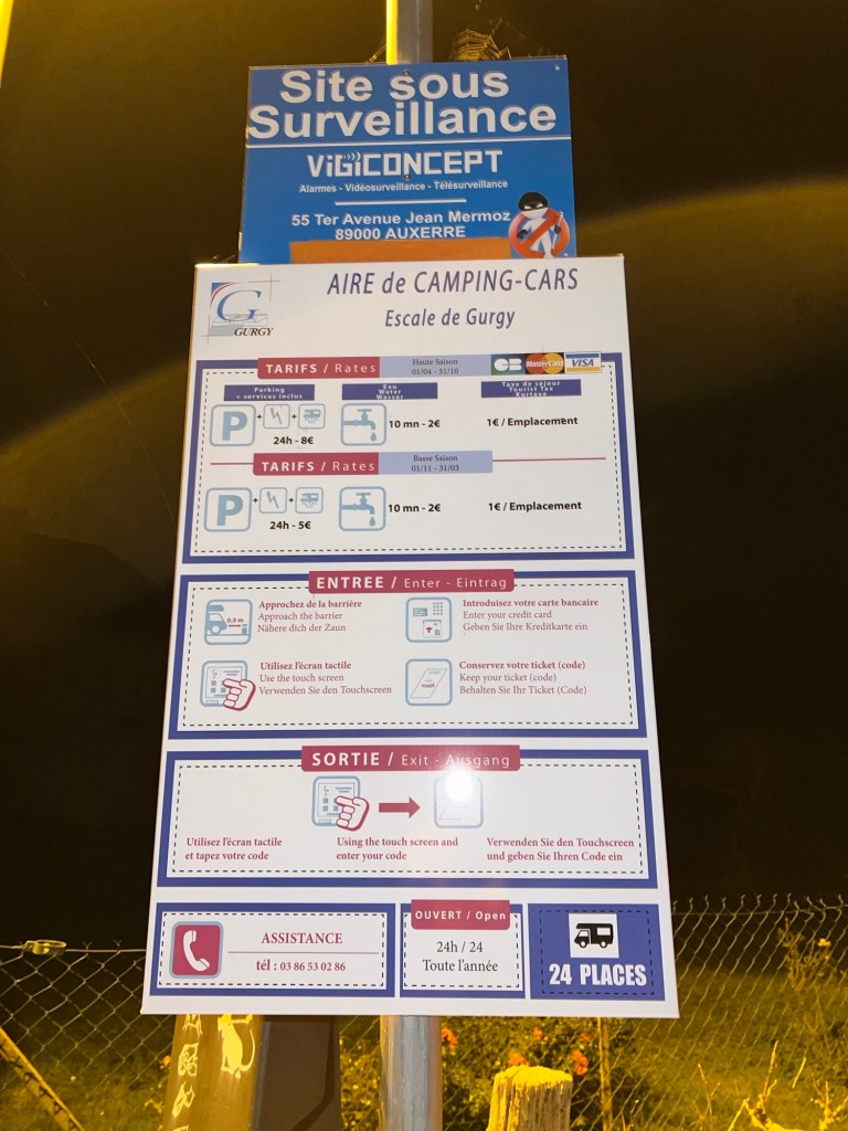 Samen lukte het om de camper te keren, de Camperplaats ligt aan de rivier de Yonne. In het plaatsje Gurgy volgen we uiteindelijk een andere camper voor de juiste ingang.