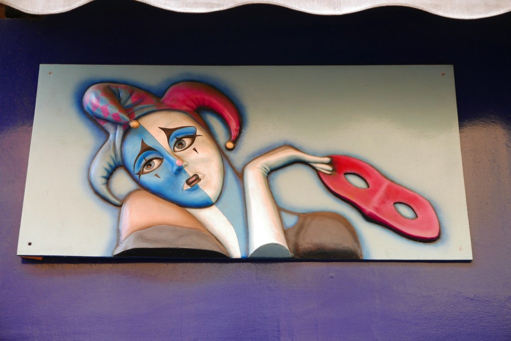 Rond 2 uur vertrokken we naar ‘beneden’ naar het stadje. Kochten brood voor morgen, bewonderden opnieuw het stadje. Het paneel bij het huis waar gas licht of water zit wordt vaak voor artistieke uitingen gebruikt.